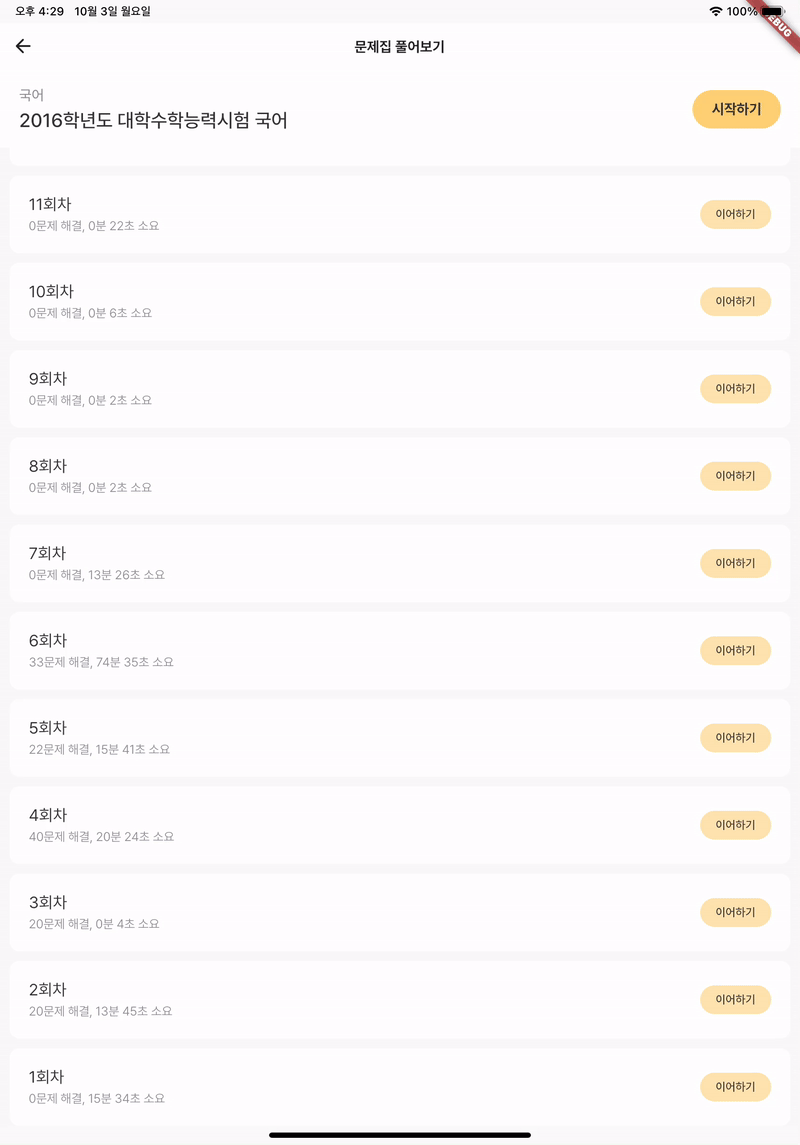 위 사진처럼 원래 화면은 라이트 모드이고, 문제 풀이 화면만 다크 모드로 만드는 것이 목표였다.