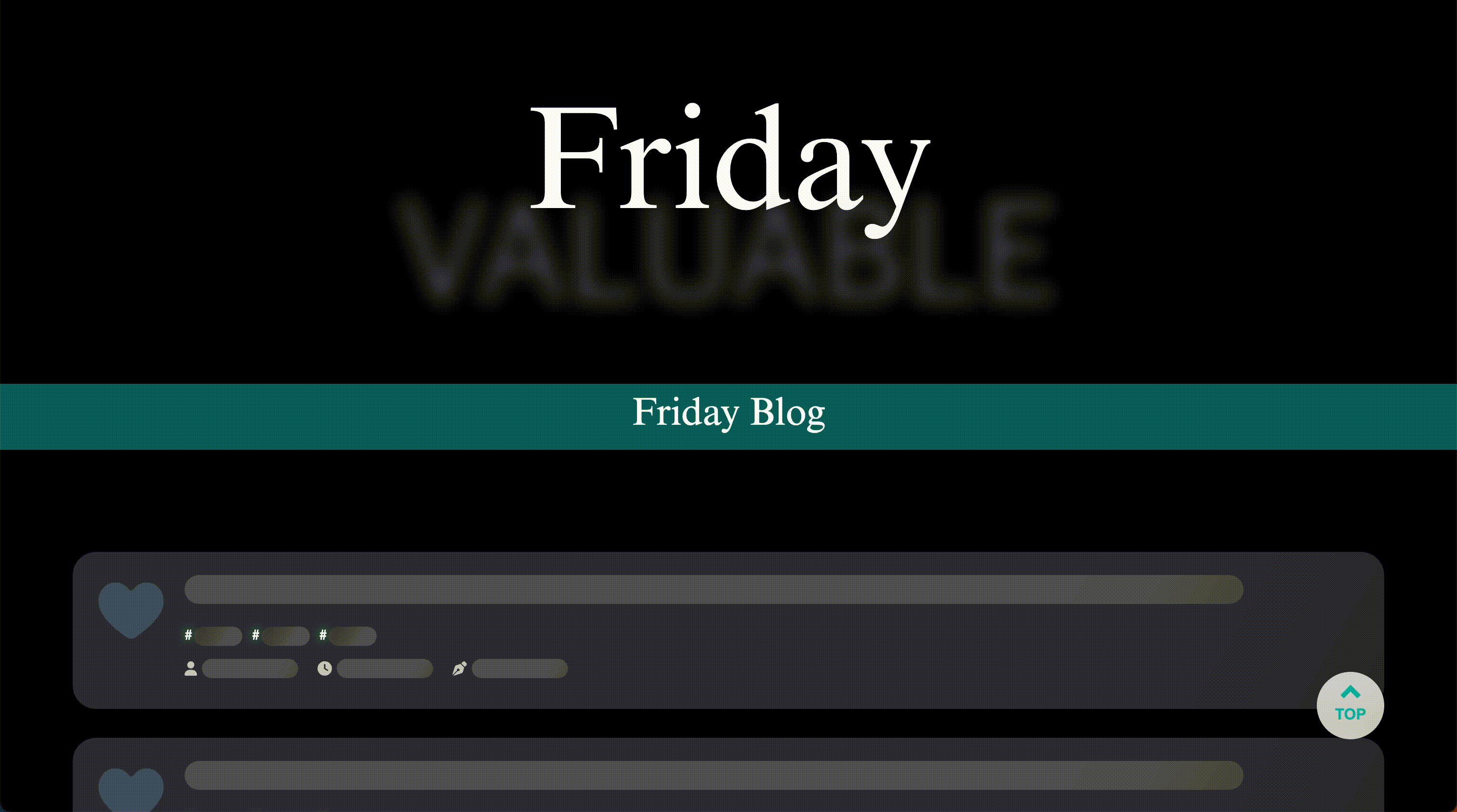 Friday 웹사이트에는 블로그 목록에 뼈대를 활용하였는데, CSS의 mask와 animation을 활용해 애니메이션을 구현하였다.